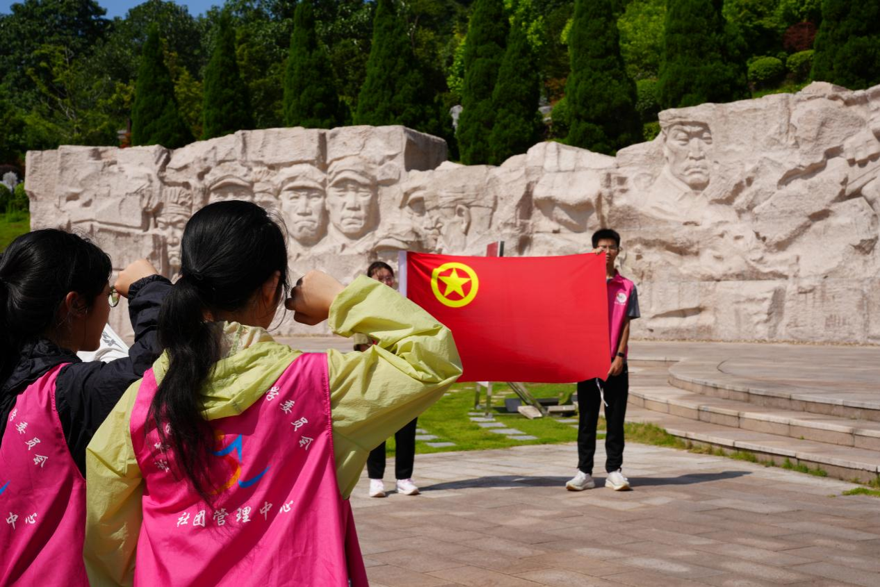 次日,实践团前往全州县红军长征湘江战役纪念园,走访了红七军前敌委员会会议旧址,开展“桂邕星火 长征薪传”主题团日活动。成员们在纪念馆中缅怀红军先烈、在纪念林中重温入团誓词。“一草一木一忠魂,一山一石一丰碑”,红色讲解员通过拍摄宣讲视频,带领团队成员回顾湘江战役惨痛的历史,进一步理解长征精神的深刻内涵,坚定青春为中国式现代化挺膺担当的决心。