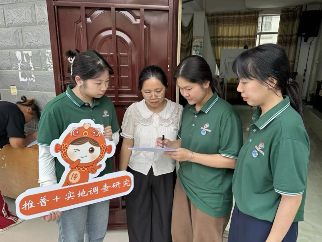 7月12日至7月17日,在南宁市邕宁区新江镇的学校里、街道上、农户家中,一群身着深绿色写有“推普助力乡村振兴”字样上衣的大学生正手持着一份份调查问卷与当地村干部、村民、学校老师以及学生家长们热切交谈——这是南宁师范大学新闻传播学院暑期“三下乡”实践团队深入乡村一线,开展专项调研的生动场景。