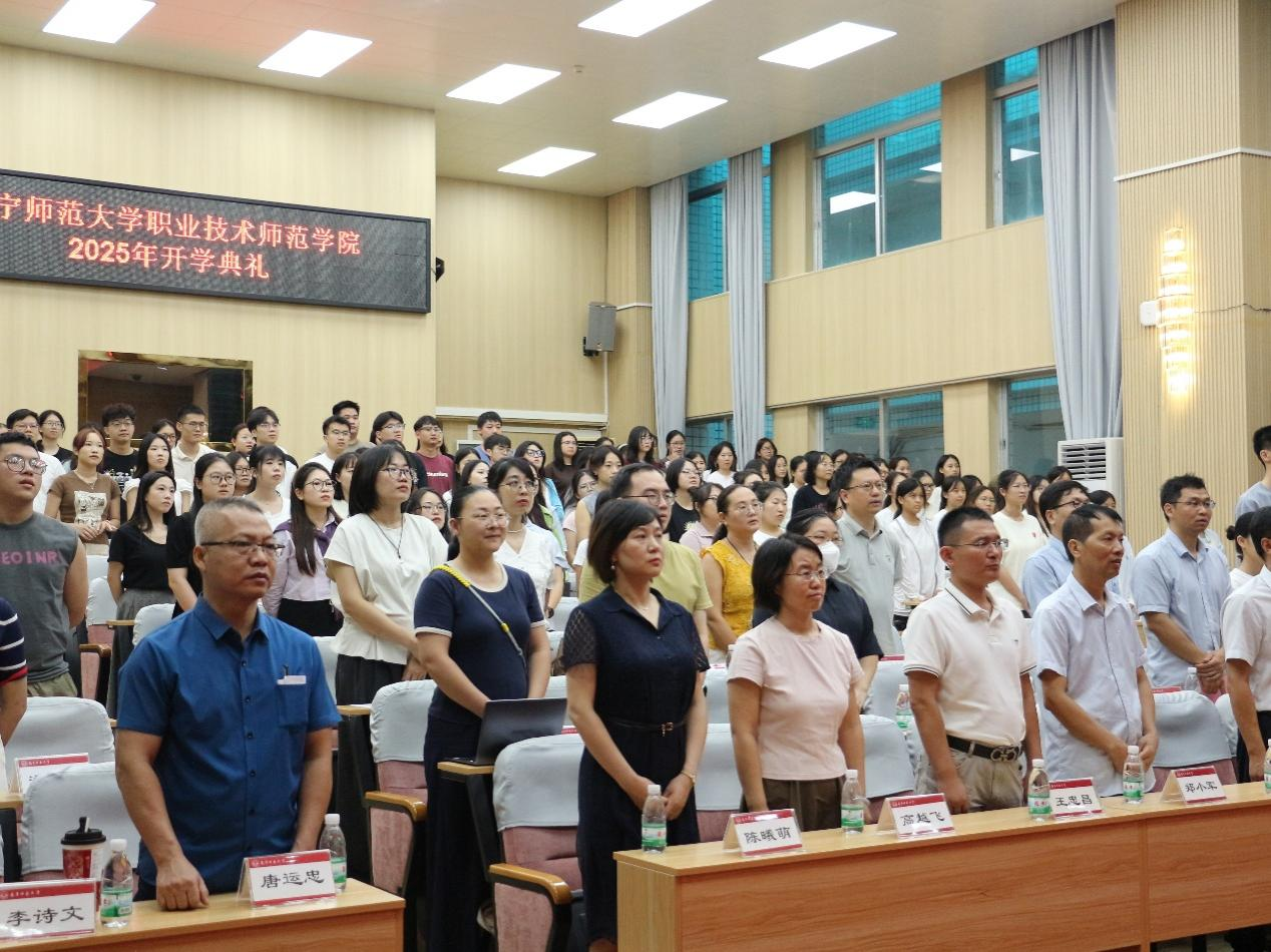 9月9日下午,职业技术师范学院在明秀校区文星楼301报告厅举行2025级新生开学典礼。学院领导班子成员及教师代表、新生班主任与全体2025级新生共同出席典礼,见证这一充满希望的重要时刻。