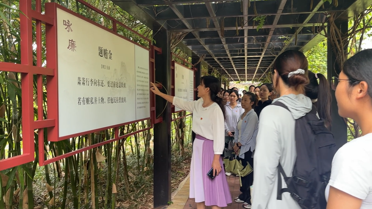 为进一步推进学院党风廉政建设,增强党员干部廉洁自律意识,筑牢拒腐防变的思想防线,9月16日下午,自然资源与测绘学院学生党员在学院纪委书记莫雅兰、学院党委组织员彭定新的带领下到武鸣校区“清风竹苑廉洁文化园”开展了一场主题鲜明、内容深刻的廉洁文化教育实践活动。