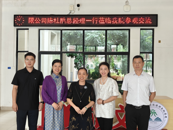 9月25日上午,广西杜鹃红文化传媒有限公司陈杜鹃总经理及原广西物流与采购联合会原副会长黄爱琼女士等一行4人莅临旅游与文化学院考察交流。学校副校长龙妮娜热情接待来访客人,双方围绕非遗传承、文创开发及产学研合作等议题展开深入洽谈。