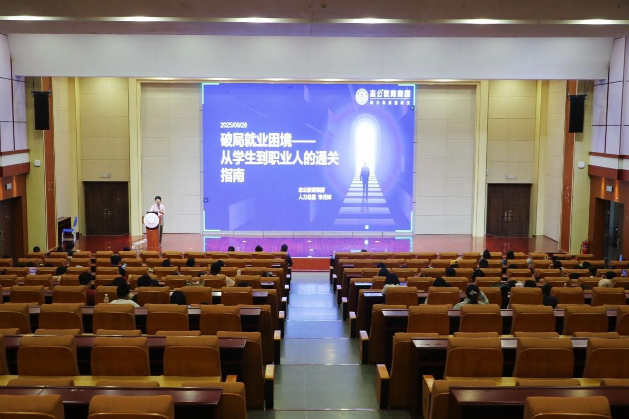 李月妹总监建议同学们通过实习实践积累项目经验,增强职场竞争力。她详细讲解求职、面试、实习环节技巧;叮嘱毕业生主动抓机会、勇于展自我,多尝试不同渠道与岗位,在实践中调整方向、积累经验;同时勉励大家以好心态面对求职挫折。