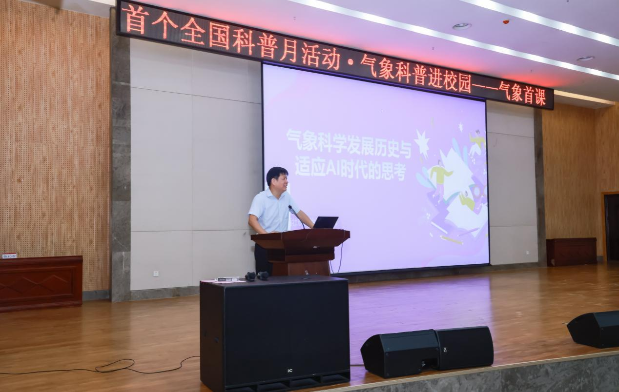 广西壮族自治区气象局副局长全文杰以“气象科学发展历史与适应AI时代的思考”为题为广大师生讲授“气象首课”。全文杰讲授了气象学科的发展历程,指出气候变暖、发展新质生产力背景下气象及相关学科专业将越来越受到重视,“气象+”和“+气象”的交叉学科人才培养需求大。他表示,大学是是重要转变的过渡期,他鼓励同学们关注新技术的发展,做好大学学习、生活规划及能力储备,为同学们在学校的学习指明了方向。
