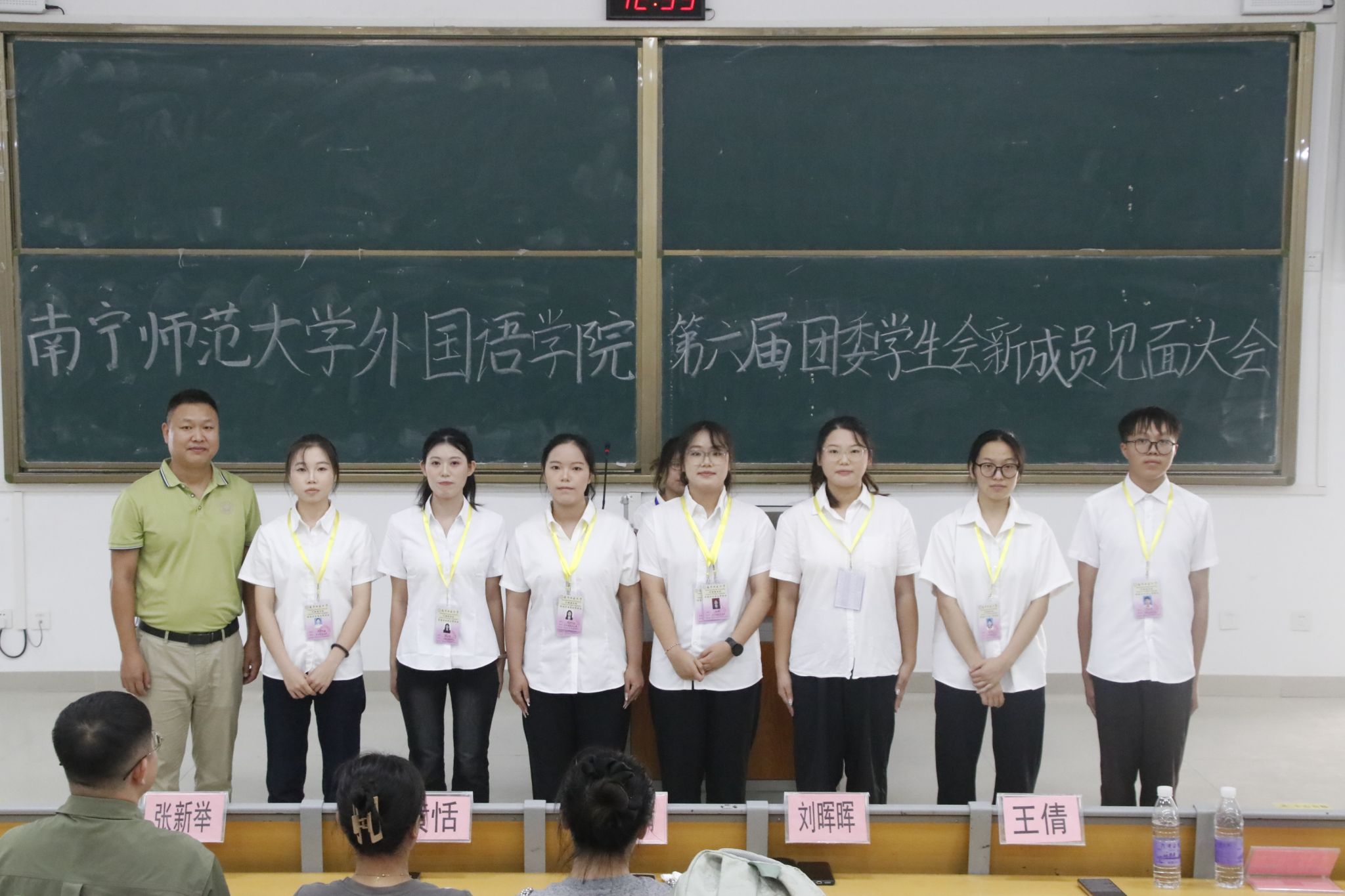 10月16日中午,外国语学院第六届团委学生会新成员见面大会在武鸣校区实验楼2B-108教室顺利进行。外国语学院党委副书记刘晖晖,学工办蔡梓晴老师、黄恬老师、张新举老师、王倩老师,团委学生会全体成员共同参加了本次大会。