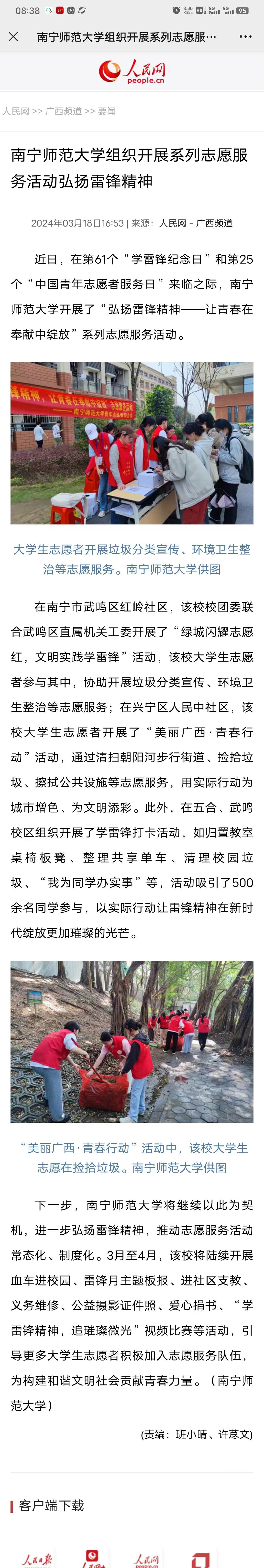【人民网】南宁师范大学组织开展系列志愿服务活动弘扬雷锋精神
