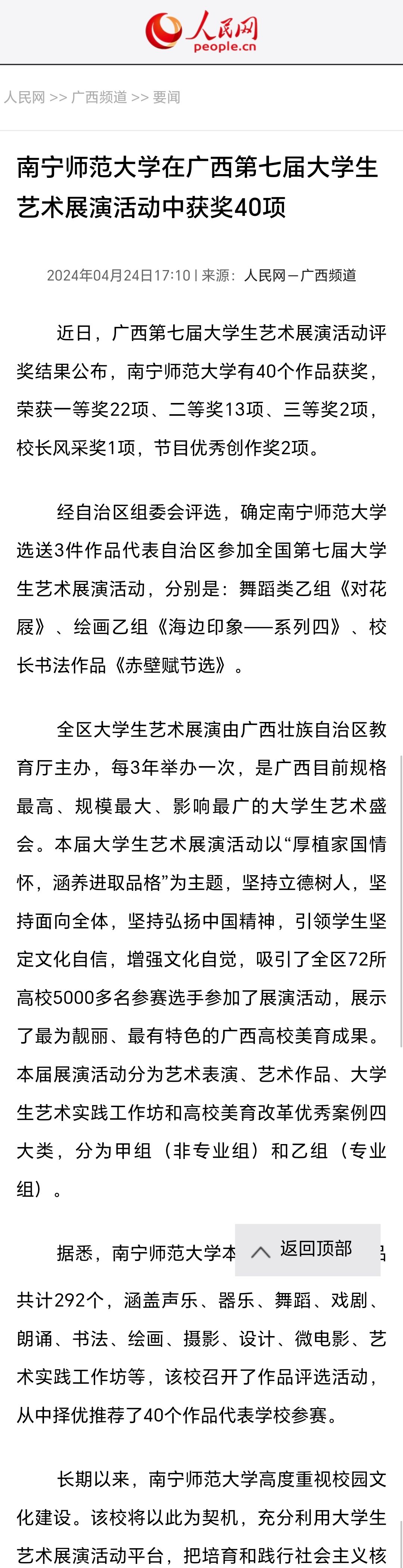 【人民网】南宁师范大学在广西第七届大学生艺术展演活动中获奖40项