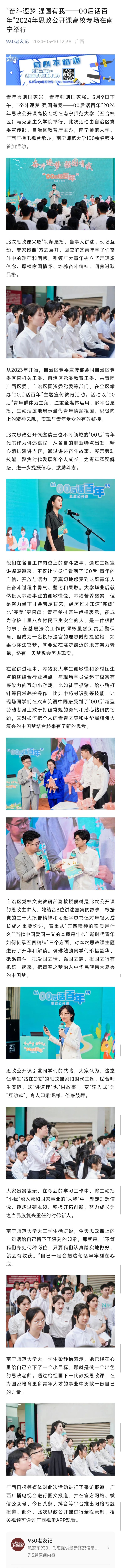 【930老友记微信公众号】“奋斗逐梦 强国有我——00后话百年”2024年思政公开课高校专场在南宁举行