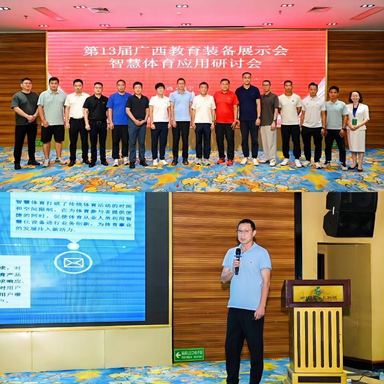 在展会期间,广西教育装备行业协会和南宁师范大学体育与健康学院联合主办了智慧体育应用研讨会。研讨会旨在贯彻党的教育方针,提升体育教学质量,探索边疆民族地区学校体育发展的新路径。会议主题涵盖智慧教育的发展方向、智慧体育中考及装备的现状与未来。形式包括设备展示和专家讲解。南宁师范大学的顾大成老师还就智慧体育的基本内涵、技术融合和实践应用场景案例分享进行了专题讲座。