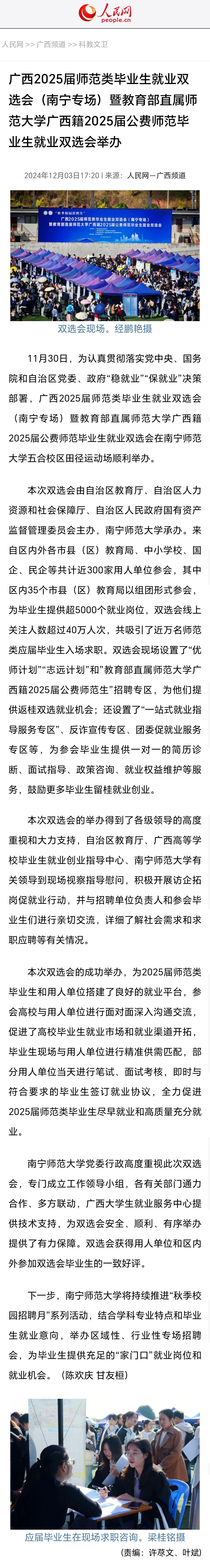 【人民网】广西2025届师范类毕业生就业双选会(南宁专场)暨教育部直属师范大学广西籍2025届公费师范毕业生就业双选会举办