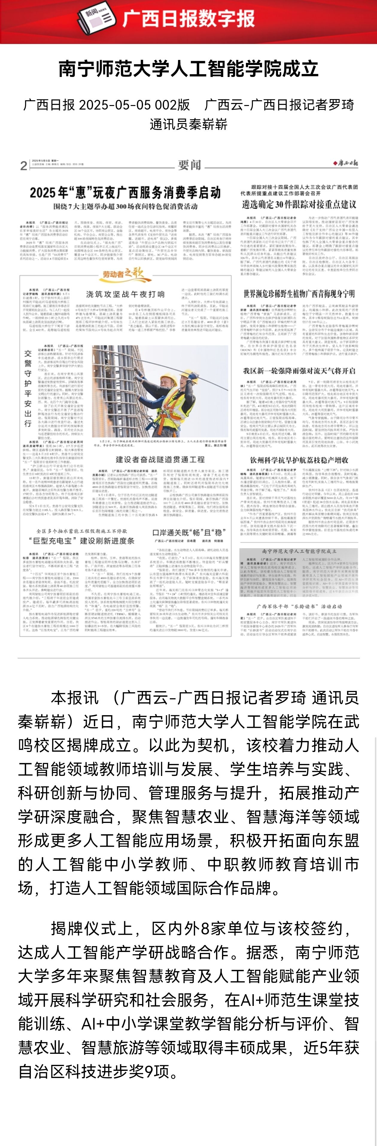 【广西日报】南宁师范大学人工智能学院成立