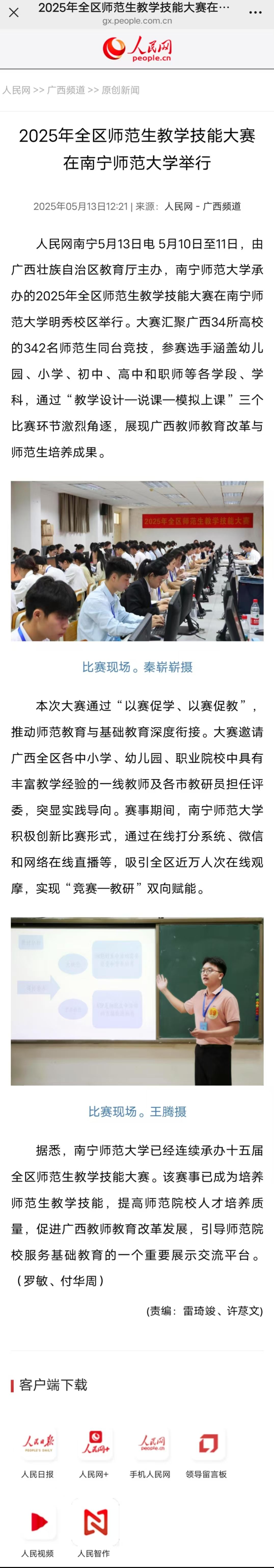 【人民网】2025年全区师范生教学技能大赛在南宁师范大学举行