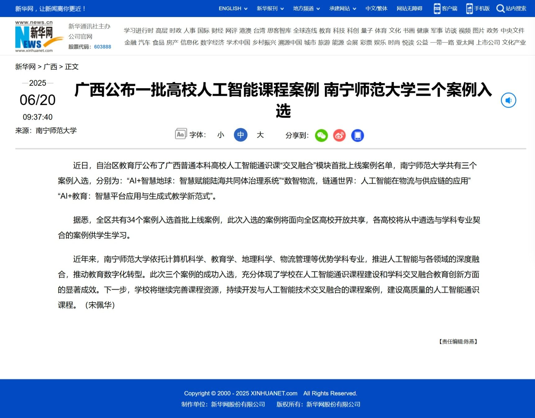 【新华网】广西公布一批高校人工智能课程案例,南宁师范大学三个案例入选