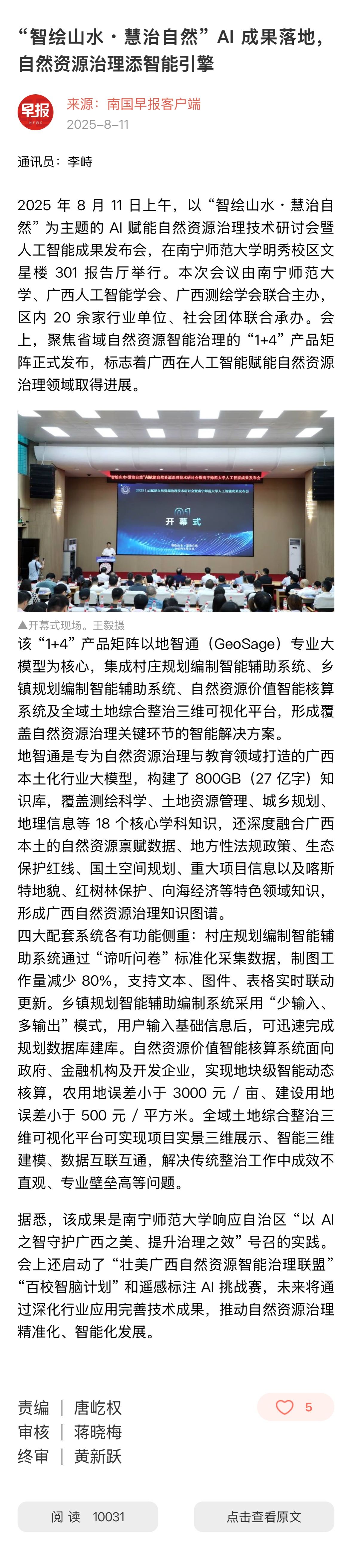 【南国早报客户端】“智绘山水・慧治自然” AI 成果落地,自然资源治理添智能引擎