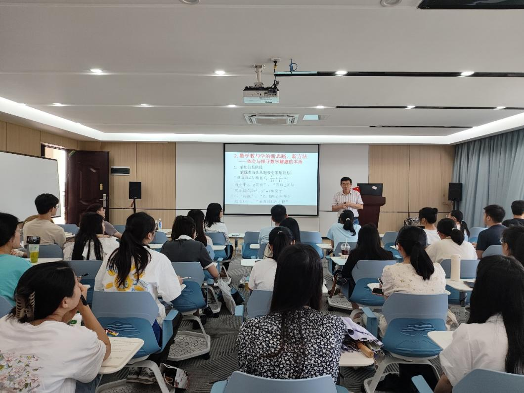 2024年4月23日,数学与统计学院邀请深圳外国语学校袁智斌教授为师生作了题为《数学教与学的新思路、新方法——基于新高考数学试卷的分析与研究》的学术报告。报告由黄在堂院长主持,该院徐庆娟、张桂芳老师、学科教学(数学)方向研究生以及部分本科生参加了此次学术活动。