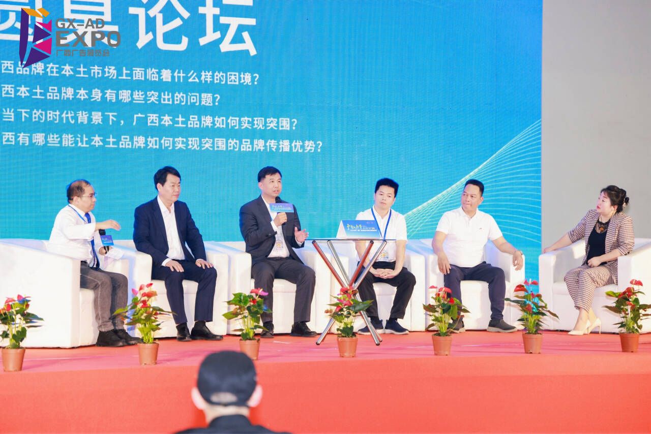 在圆桌论坛环节,我院院长陈洪波教授与广西商贸服务业发展促进会会长 、广西大学工商管理学院研究生导师—许锋利,广西质量工程职业技术学院广告学院院长、广西工艺美术协会常务副理事长—韦锦业,广西标识行业协会会长—尹峰,南宁市广告协会会长彭贵就“区域性品牌该如何从品牌传播上实现突围”这一议题展开了讨论。圆桌论坛由我院王乃考教授主持,各位专家、行业带头人重点讨论了以下三个方面:广西品牌在本土市场上如何打造品牌影响力与市场号召力?在当下的时代背景下,广西本土品牌有哪些突围途径?广西有哪些能让本土品牌实现突围的品牌传播优势?各位专业和代表嘉宾展开了积极探讨,发表个人专业上的见解和建议。