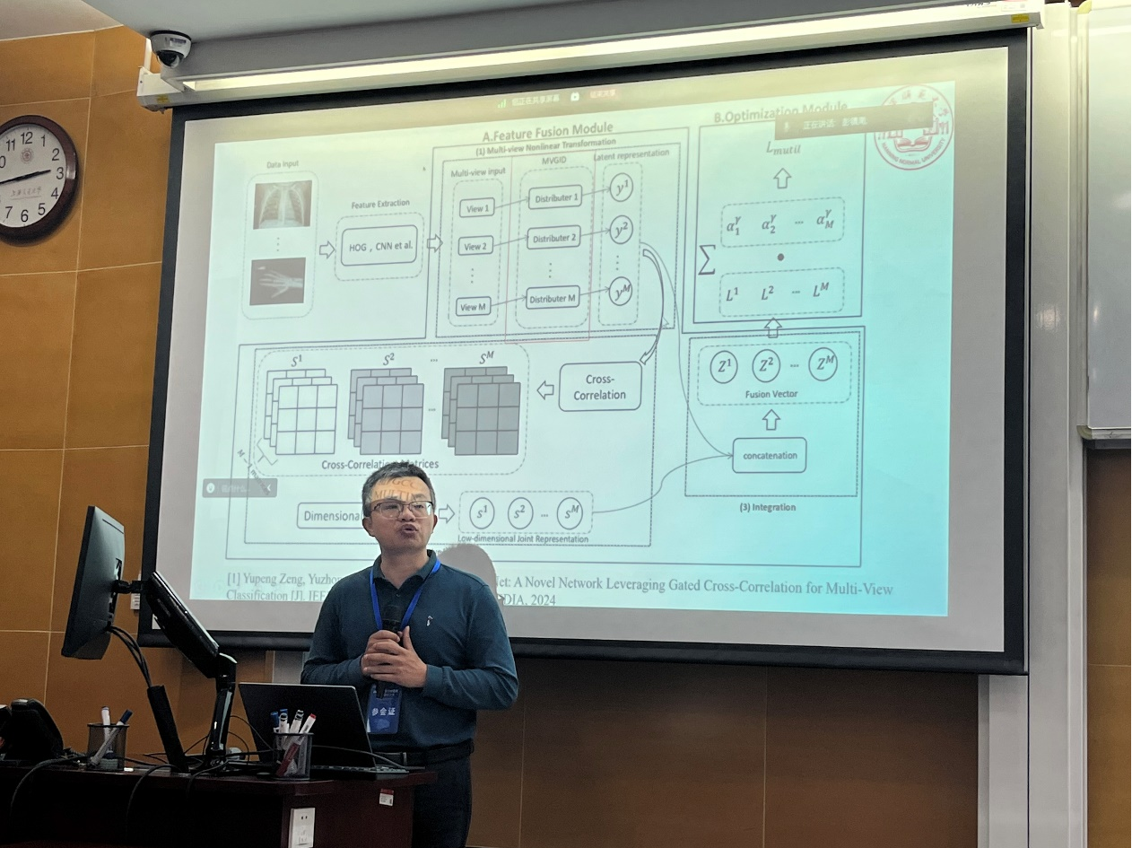 学院彭昱忠教授团队近年主要研究利用人工智能技术解决生命科学中精准医疗存在的关键问题,为生命科学领域开辟了新的研究思路和方向。他受邀在这次会议作学术报告,与国内外同行们现场分享和讨论了其团队基于多视图深度学习方法的化合物分子性质预测建模研究工作成果,探讨合作可能性,充分展示了学院教师在人工智能+领域广泛而深入的研究成果及其学术影响力,促进了人工智能与生物医药研发交叉融合与发展。计信学院将继续鼓励与支持教师积极参与国内外学术活动,加强与国内外顶尖科研团队的合作,不断推动学院科研水平的提升,为培养具有国际视野和创新能力的高素质人才奠定坚实基础,也为全球人工智能领域的发展贡献更多的智慧和力量。