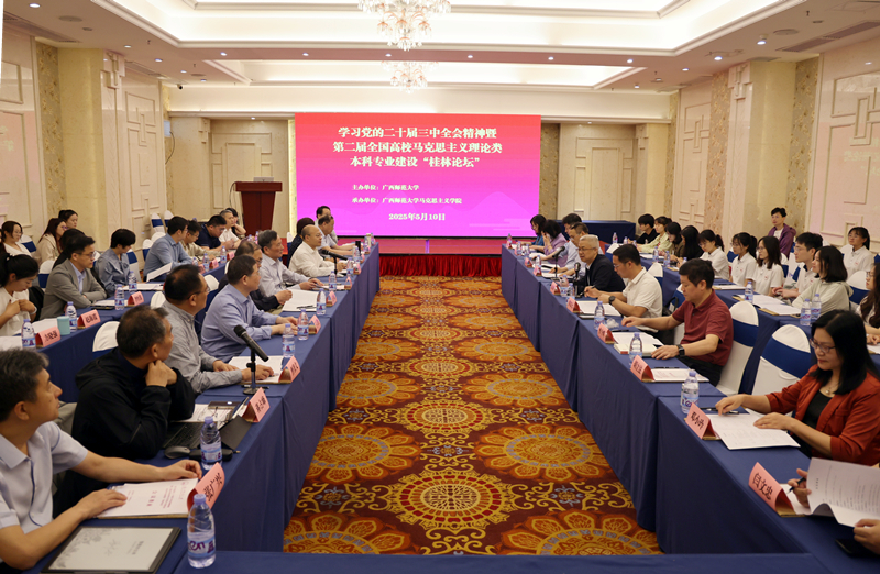 为了进一步推进马克思主义学院思想政治教育本科专业建设,加强高校马克思主义理论类本科专业建设经验交流,5月10日,我校马克思主义学院院长曾令辉应邀参加由广西师范大学马克思主义学院承办的“学习党的二十届三中全会精神暨第二届全国高校马克思主义理论类本科专业建设‘桂林论坛’研讨会”,会议旨在深入学习贯彻落实党的二十届三中全会精神和习近平总书记对新时代马克思主义理论研究和建设工程的重要指示,落实立德树人根本任务,推动新时代马克思主义理论类本科专业高质量发展。来自西安交通大学、兰州大学、中山大学、南宁师范大学等共19个单位和高校的40多名专家学者和青年学子参会。