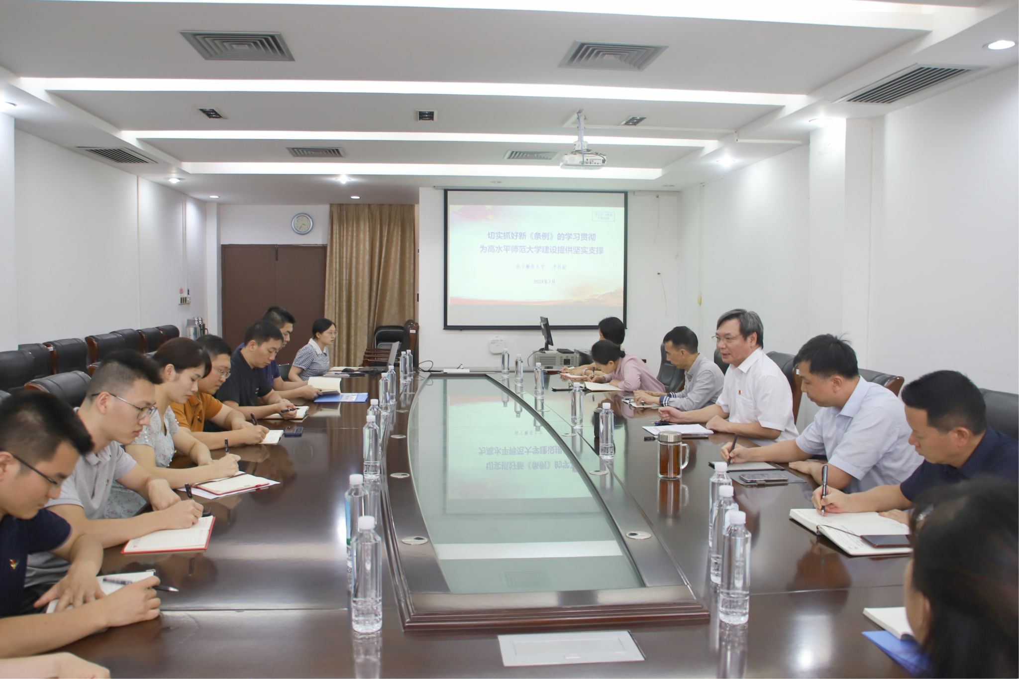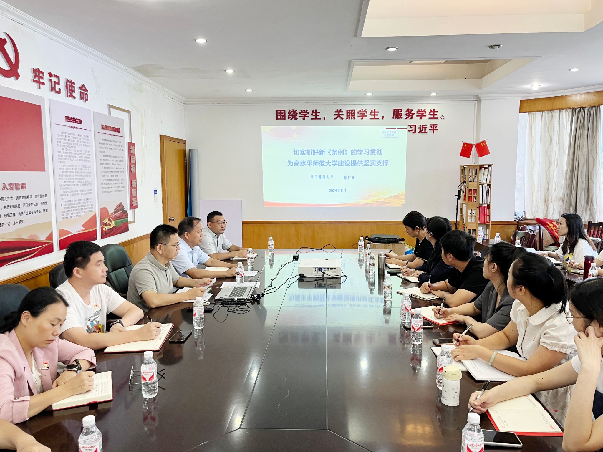 党课强调,要深入学习贯彻习近平总书记关于全面加强党的纪律建设的重要论述和关于广西工作论述的重要要求,深入学习贯彻《条例》,持续开展好党纪学习教育,把学习成效转化为强实干、抓落实的使命担当,为高水平师范大学建设提供坚强纪律保障。